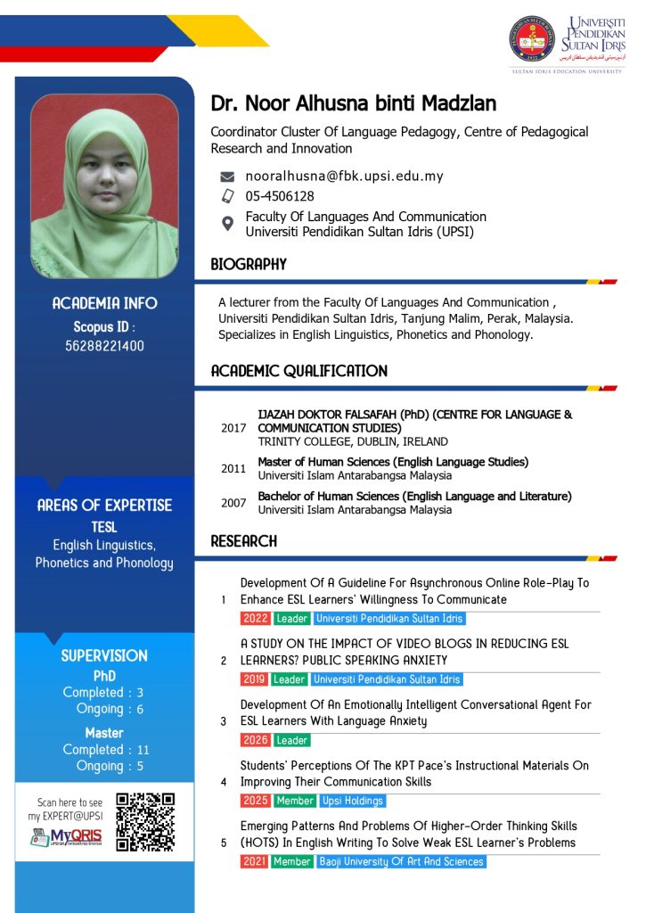 The Language Pedagogy Cluster involves pedagogy in language subjects offered by the Ministry of Education Malaysia such as Malay, English, Chinese, Tamil and others.